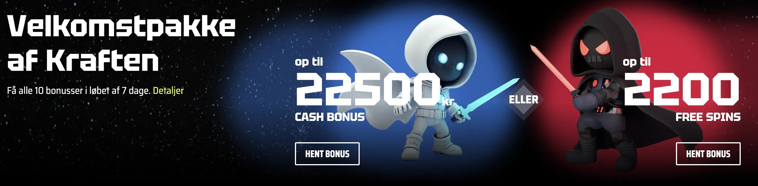 - Light Side: 100 gratis spins med €0,10 indsatsværdi